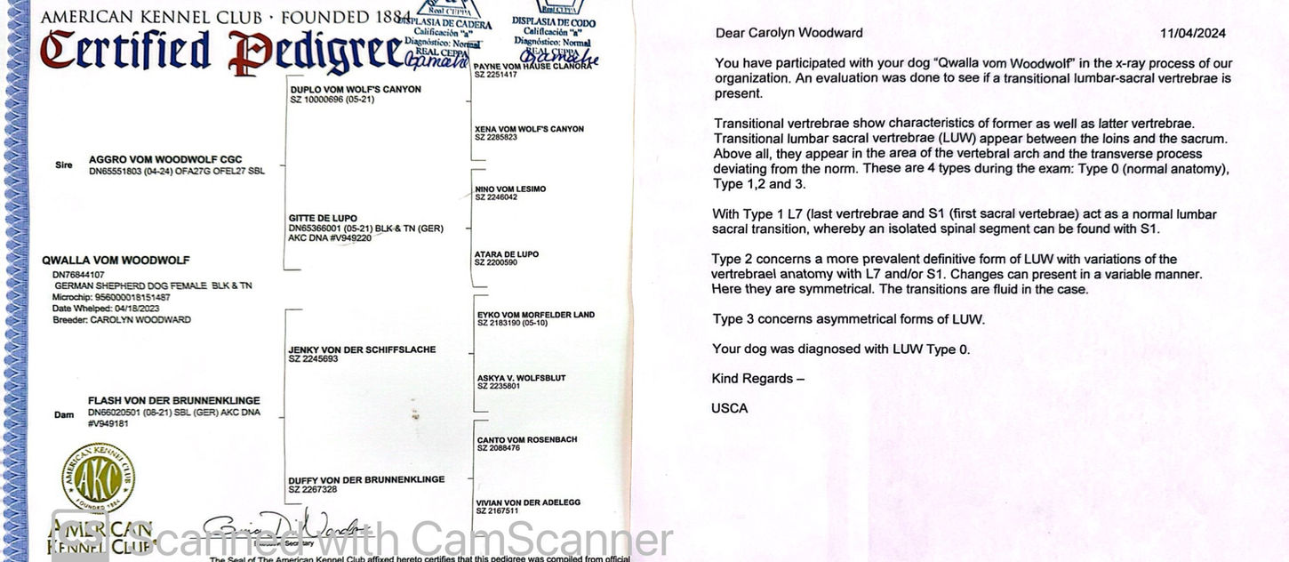 We are THRILLED she has passed her Official SV Hips (A1 - Excellent) and Normal Elbows (A1 - Excellent) and see all she produces in our program.